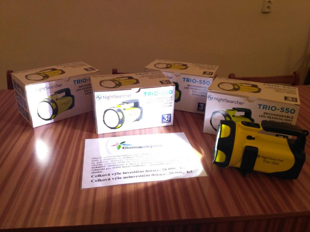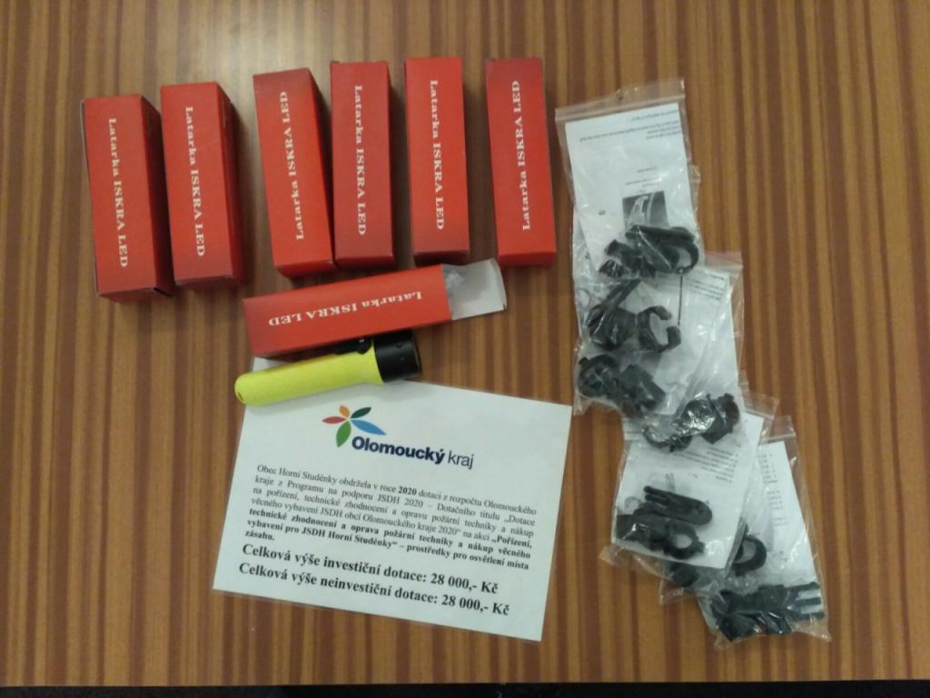 Obec Horní Studénky obdržela v roce 2020 dotaci z rozpočtu Olomouckého kraje z Programu na podporu JSDH 2020 – Dotačního titulu „Dotace na pořízení, technické zhodnocení a opravu požární techniky a nákup věcného vybavení JSDH obcí Olomouckého kraje 2020“ na akci „Pořízení, technické zhodnocení a oprava požární techniky a nákup věcného vybavení pro JSDH Horní Studénky“ – prostředky pro osvětlení místa zásahu.